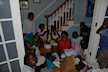Sorting through all the clothes dropped off by our generous neighbors. |
